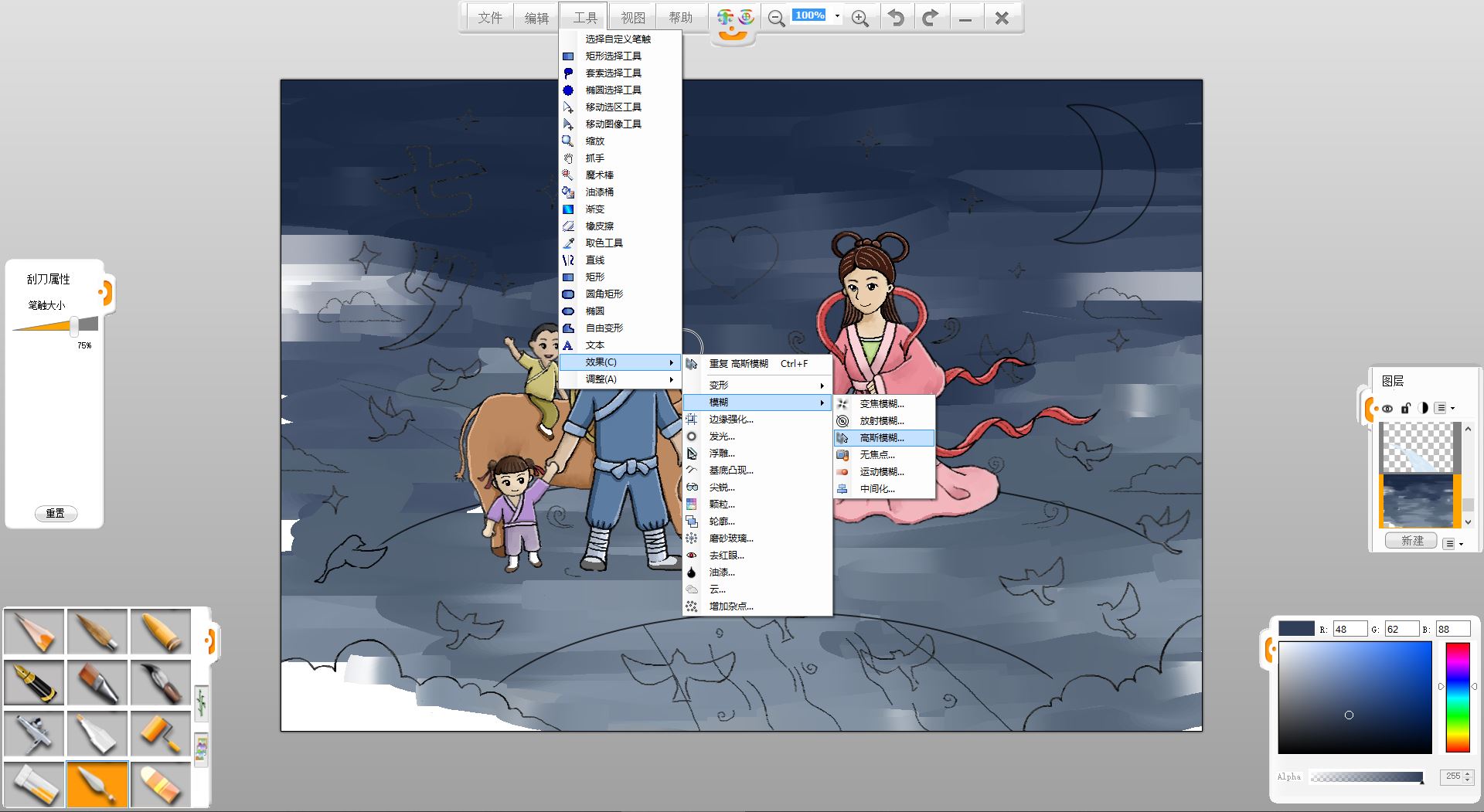16.在工具菜单下,选择“效果”-“模糊”-“高斯模糊”,将背景色模糊处理。