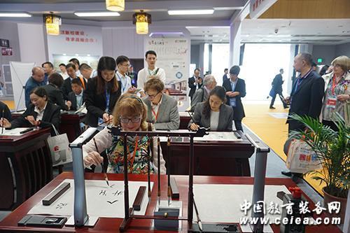 智慧书法教室成现场火爆焦点,吸引了众多观展嘉宾驻足并体验