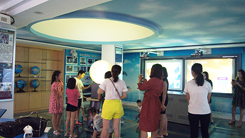 数字地理室,不仅有模拟海洋、天空、还可以通过环形巨慕观看地理知识短片,让你有身临其境的体验。