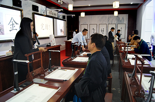 智慧书法教室展区人气爆棚 参展嘉宾纷纷体验