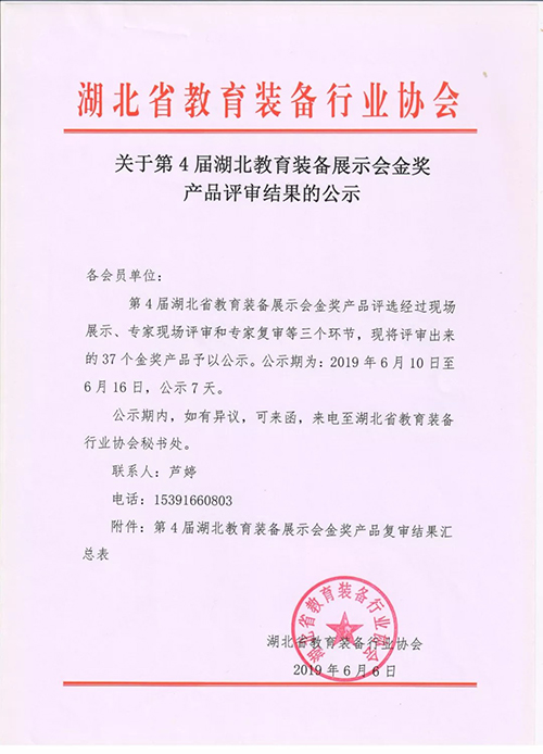 近日,湖北省教育装备行业协会发布了第4届湖北教育装备展示会金奖产品评审结果。广视通数字书法云终端荣获“第4届湖北教育装备展示会金奖产品”称号。