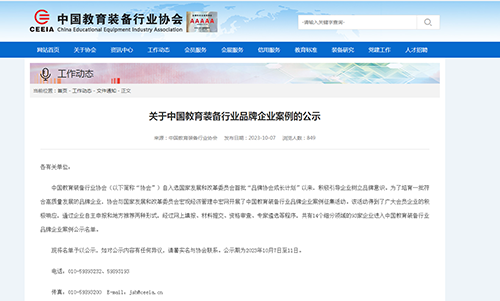 中国教育装备行业协会积极引导企业树立品牌意识,为了培育一符合高质量发展的品牌企业,与国家发展和改革委员会宏观经济管理中宏网开展了中国教育装备行业品牌企业案例征集活动。