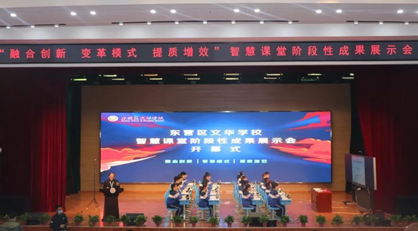 本次成果展示会是东营区文华学校开展智慧课堂教学和“问题化学习”课堂改革一年的一次阶段性成果汇报,也是课堂改革的经验总结。伴随着信息化时代的来临和新兴技术的不断冲击,传统的课堂教学面临着巨大的挑战,也必将推进学习方式的变革和学习主体的自我觉醒。