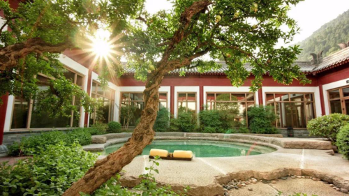 西安华清御汤酒店位于西安华清池景区九龙湖南侧,是一处集温泉水疗、沐浴养生、盛唐文化品赏于一体的高端园林式温泉酒店。以“师法自然”的理念,突出“唐、禅、清、养”主题。山、水、林、石自然融合,亭、轩、廊、殿相映成趣,自然之美与雕琢之美融为一体,温泉氤氲,环境优雅。