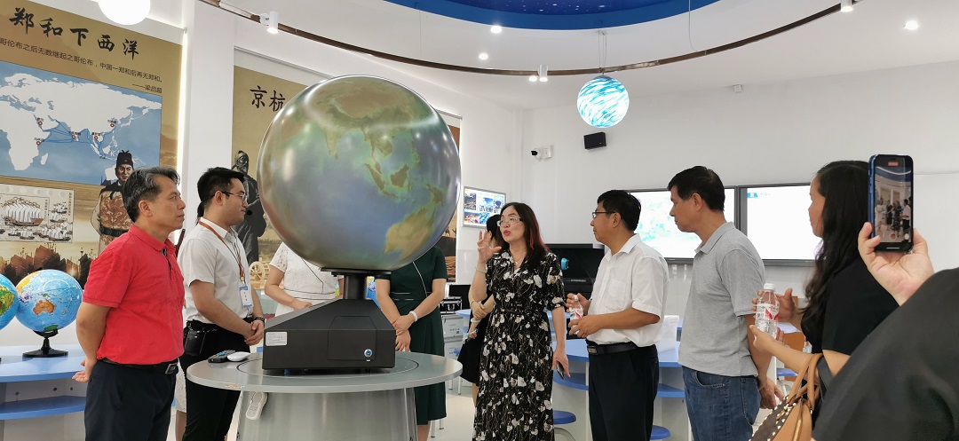广西技术与信息中心主任肖荣亮和副主任陈军陪教育部教育装备研究与发展中心首席研究员、学术委员会主任委员、科研处处长刘强到南宁相思湖学校史地教室参观。