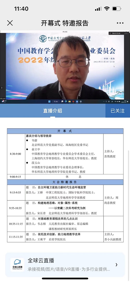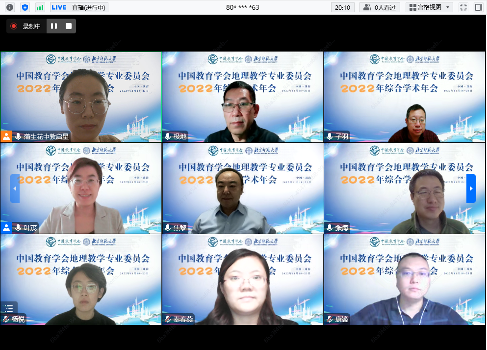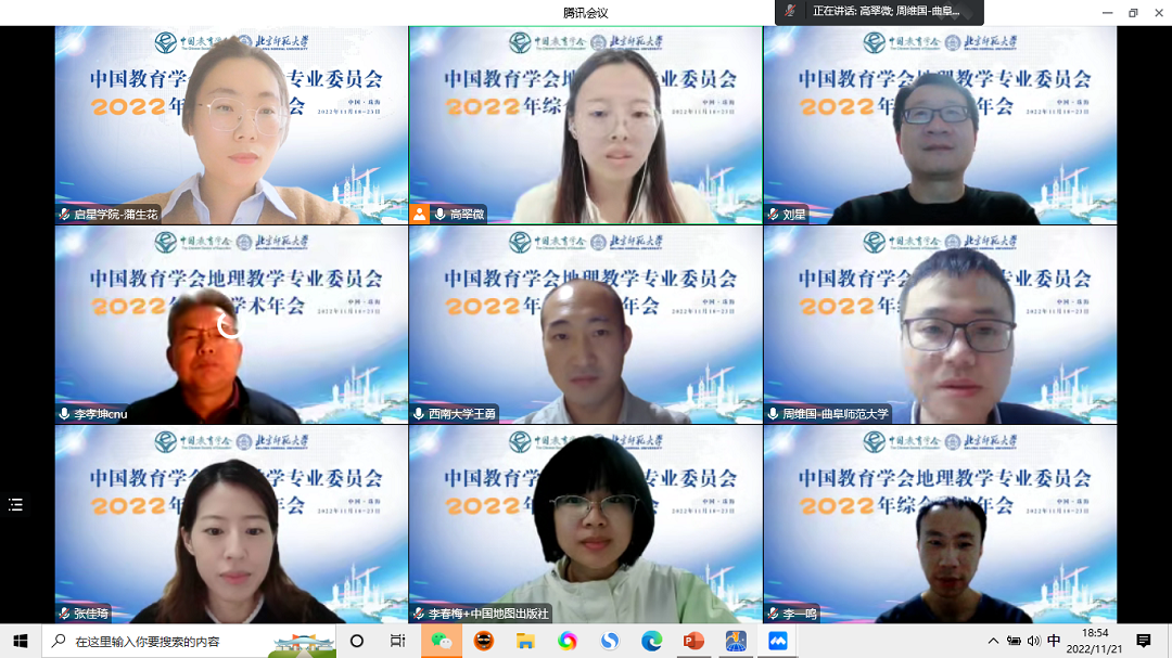 受疫情影响,11月18-23日,中国教育学会地理教学专业委员会2022 年综合学术年会通过“主会场+分会场”、“线上直播”的方式举行。