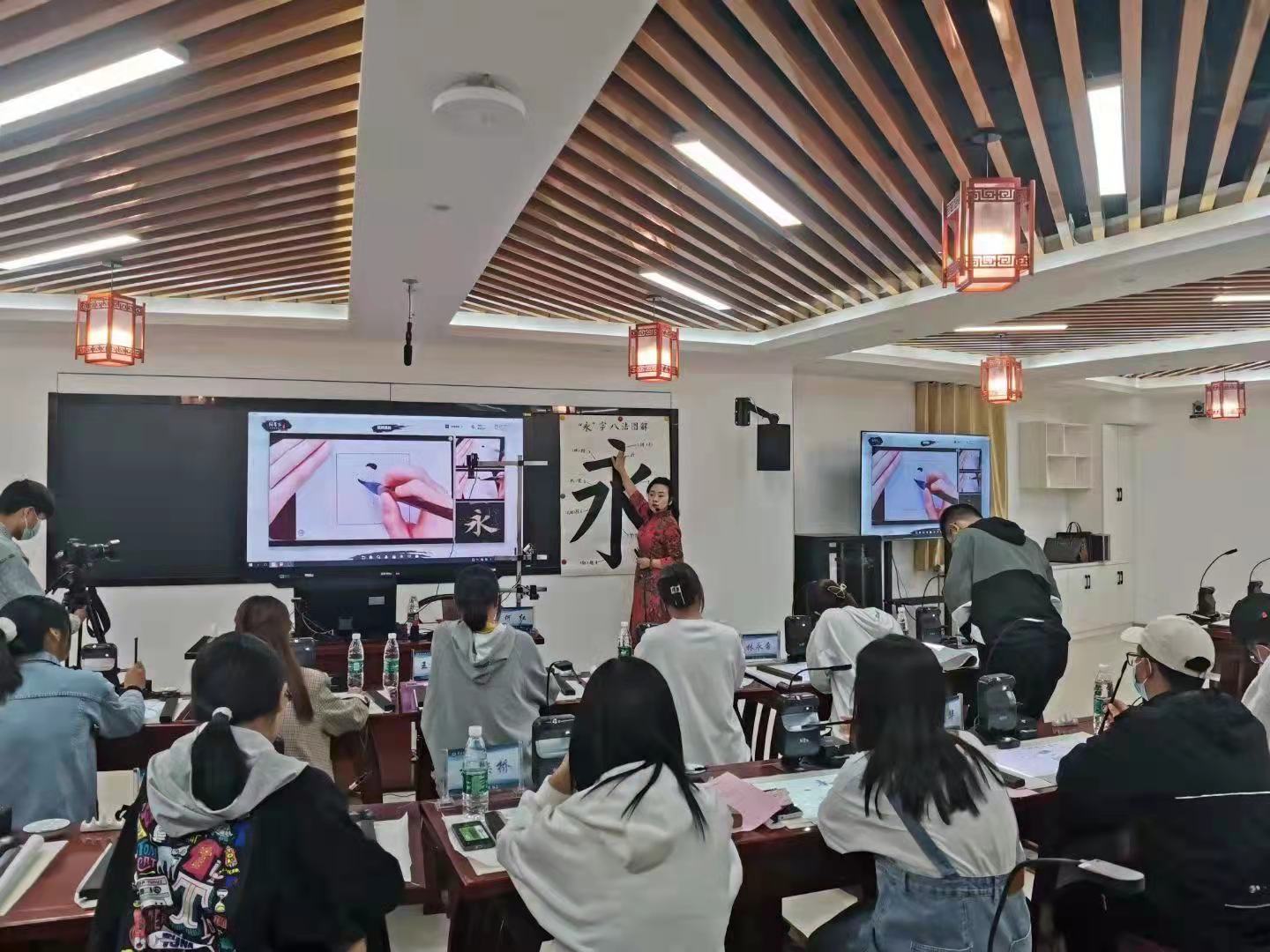 羿飞教育经过半年的精心规划和设计,打造了目前最现代化的智慧书写中心,实现了校方全部预期功能。在中心的启用仪式上,美术学院何红教授现场进行书法教学演示,为师范生上了一堂别开生面的书法课。