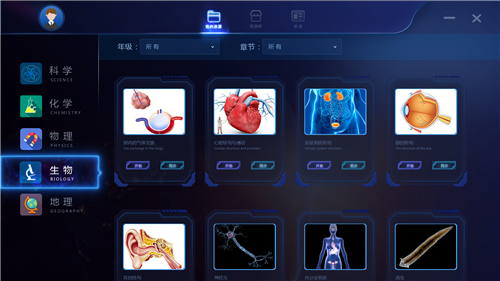 VR仿真教育资源库,包括虚拟实验资源、课题探索研究资源、3D模型库等。