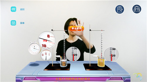 按照国家课程标准实验要求,将中学物理难懂的抽象的复杂的实验运用3D建模及AR技术营造虚实合一的实验场景。老师无需佩戴任何体感设备即可进行手势操作,通过手势可以实现抓取、移动、添加、减少、旋转、拆除、组合等动作,从而进行探究实验操作。