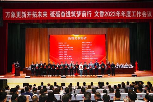 2月8日上午,2023文香年度工作会议在安徽池州成功召开。文香董事长朱玉荣,高级副总裁左雪、时守军、程尧等高管及文香全体员工出席了此次大会。