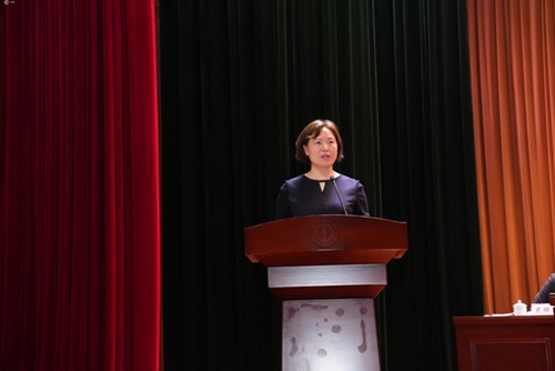 在热烈的掌声中,文香董事长朱玉荣作《文香工作报告》。