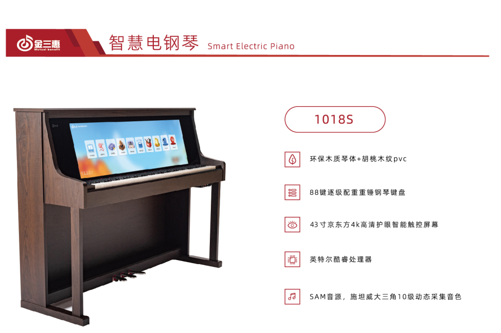 √采用定制43寸超宽京东方4k高清护眼智能屏,酷睿高性能CPU,施坦威钢琴原声采样音源、AI智能音频处理器、琴体采用国家一级环保板材,产品质量达到国内先进水平;