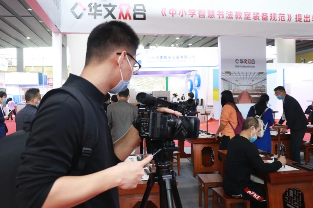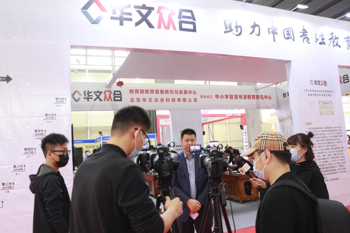 凭借着前沿的技术与出色的产品,华文众合智慧书法教室吸引了众多参观者的热议与驻足。展会现场,华文众合副总裁陈方义接受了新华网、香港卫视、广州日报、腾讯视频等多家媒体记者的采访,分享、阐述华文众合对智慧书法教育产业发展的理解与思考。