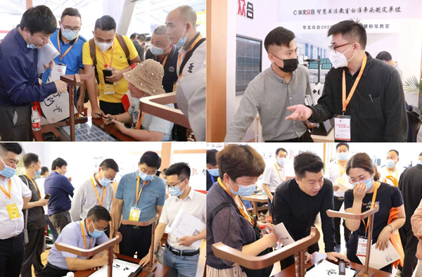 参观者接连不断地走进华文众合展位,通过使用第七代智慧书法教室,体验者真切感受到智慧书法教学的便利。华文众合希望能用更加智慧的书法教学设备实现弘扬书法传统文化的美好愿景,众心合力,弘扬华文!