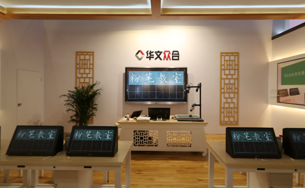 此外,由华文众合首创推出的智慧粉笔教室同样为大家带来了焕然一新的感受,通过交互式粉笔临摹台的专利技术,让学生用普通粉笔即可直接在临摹屏上书写,既还原了传统粉笔书写的体验,还实现了粉笔字帖的电子化,以及学生自主学习、老师分组教学等多模式教学,填补了国内基于交互式粉笔临摹台的智慧粉笔教室的空白。智慧粉笔教室的诞生,使粉笔教学工作更加科技化和系统化,有利于师范类院校实现文化传承职能,促进师范生就业问题。