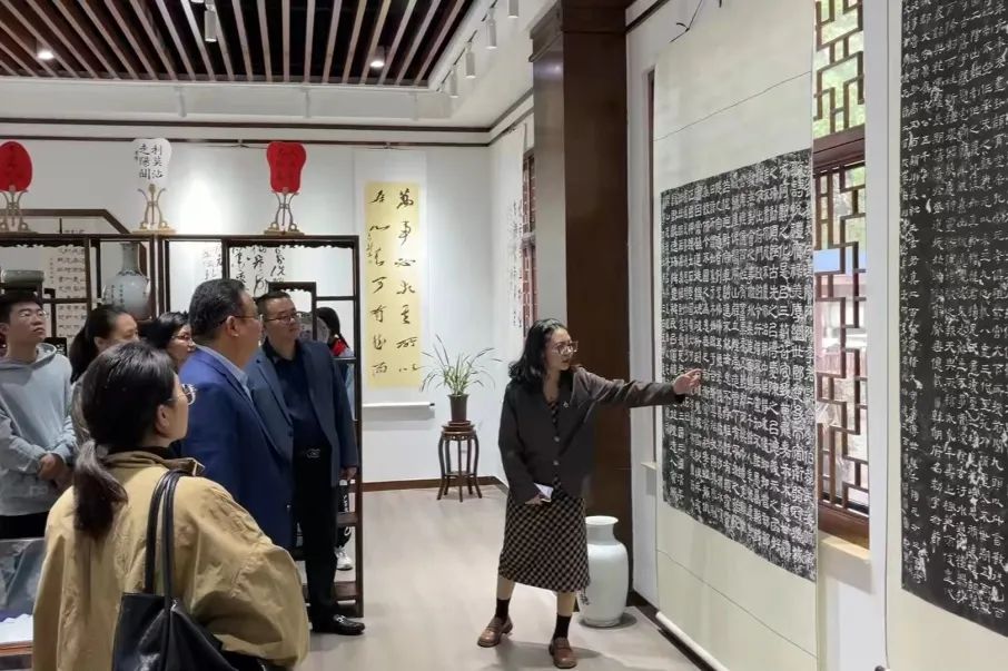 书法教学课结束后参会老师共同参观了兰花小学的兰雅书院,兰花小学以“兰文化”为核心构建的校园文化。书法展馆中除了丰富的书法作品外,还有拓印的碑帖原文,除此之外还有以书法为主题的艺术作品,展馆内可谓琳琅满目,获得参会老师的一致认可和赞扬。