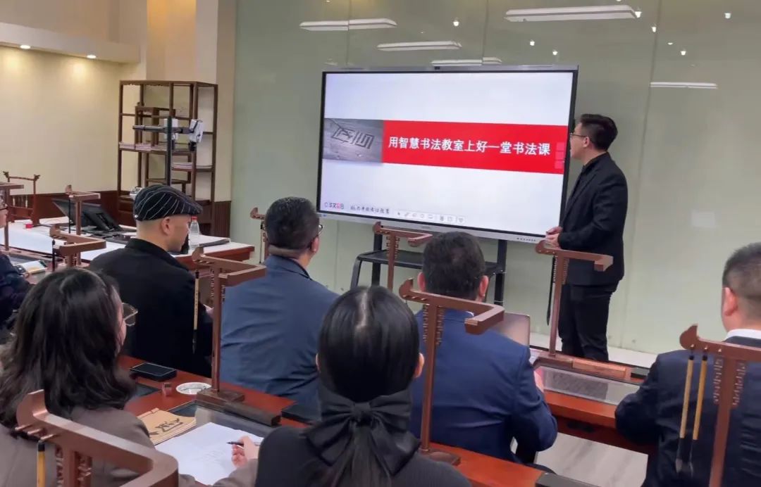 之后的时间里华文众合的工作人员对华文众合智慧书法教室做了产品介绍,以智慧书法教室使用技巧及学科融合为主题,介绍了如何用华文众合智慧书法教室上好一堂书法课,把各个模块组合起来灵活运用,让书法课更生动、更形象、更有趣、更有内涵。