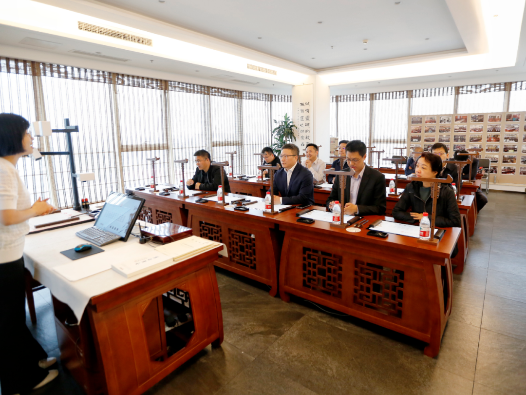 华文众合董事长向大凤向刘学亮一行报告了关于企业文化、市场规模、产品研发成果等情况,刘学亮一行亲身体验智慧书法教室中的交互式数字临摹台及多维互动系统功能,肯定了华文众合在书法科技创新和数字技术赋能传统文化传承所取得的创新发展成果。
