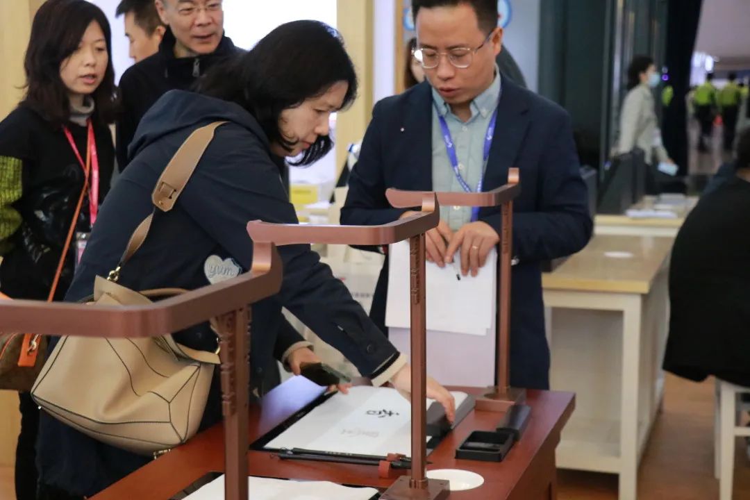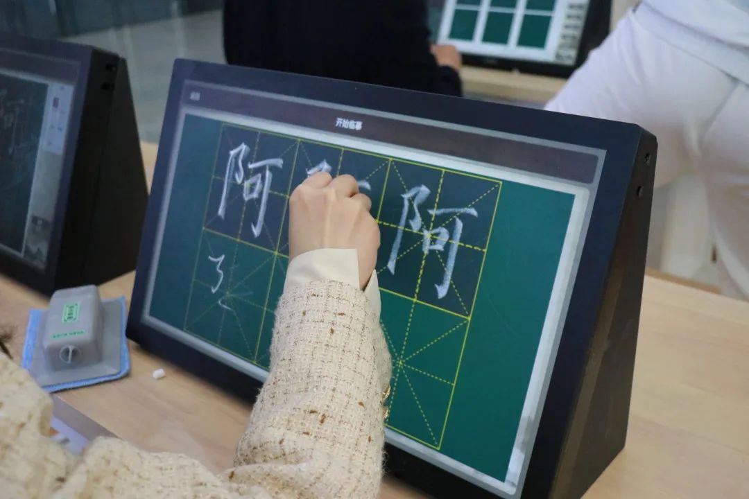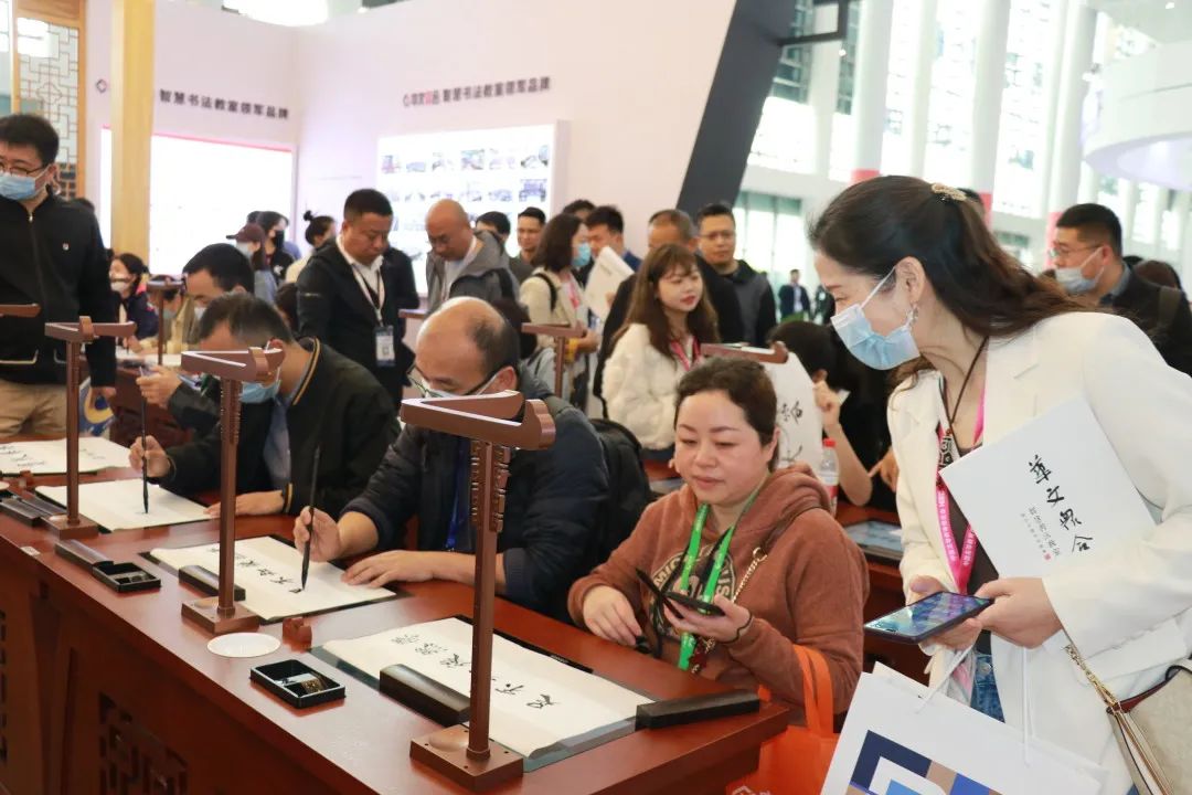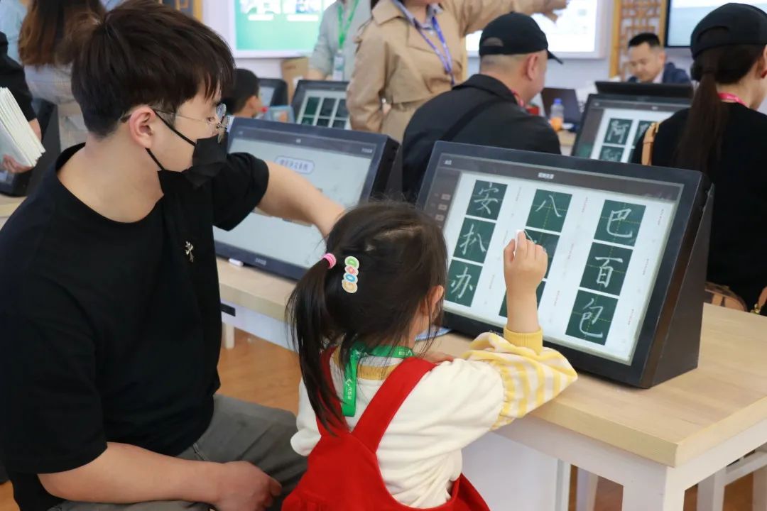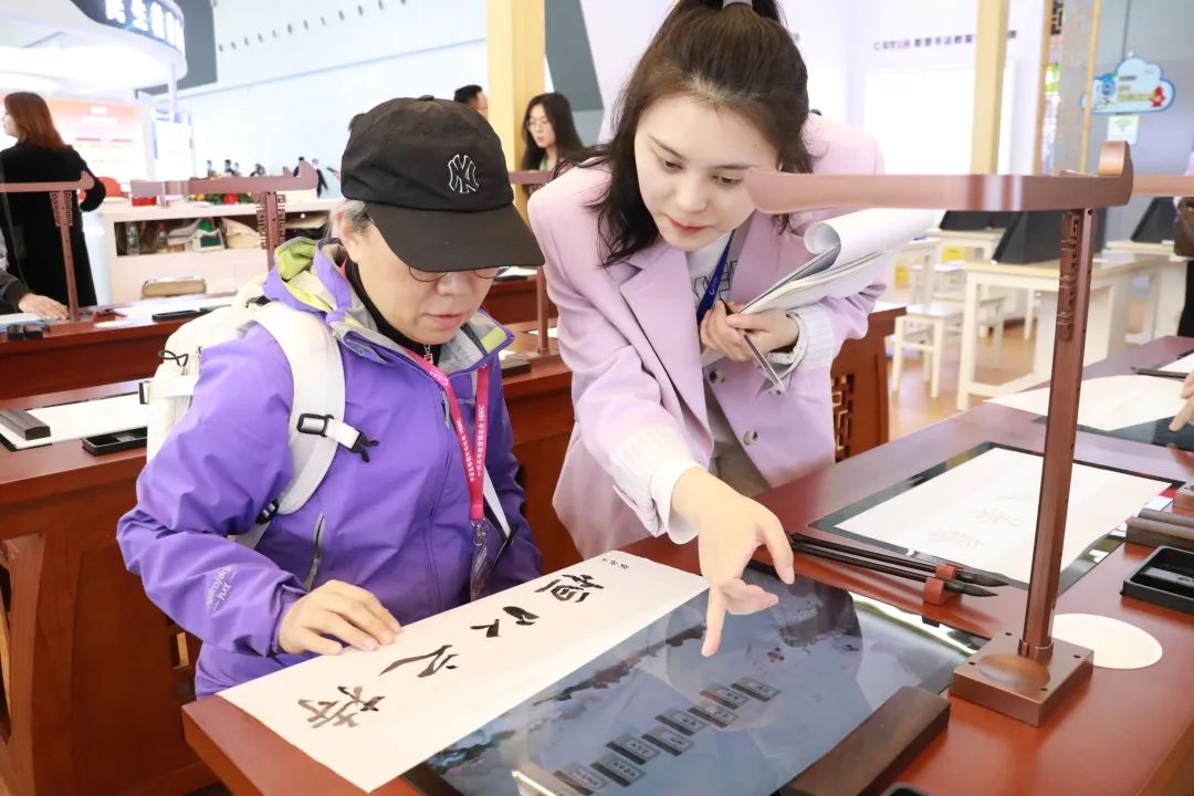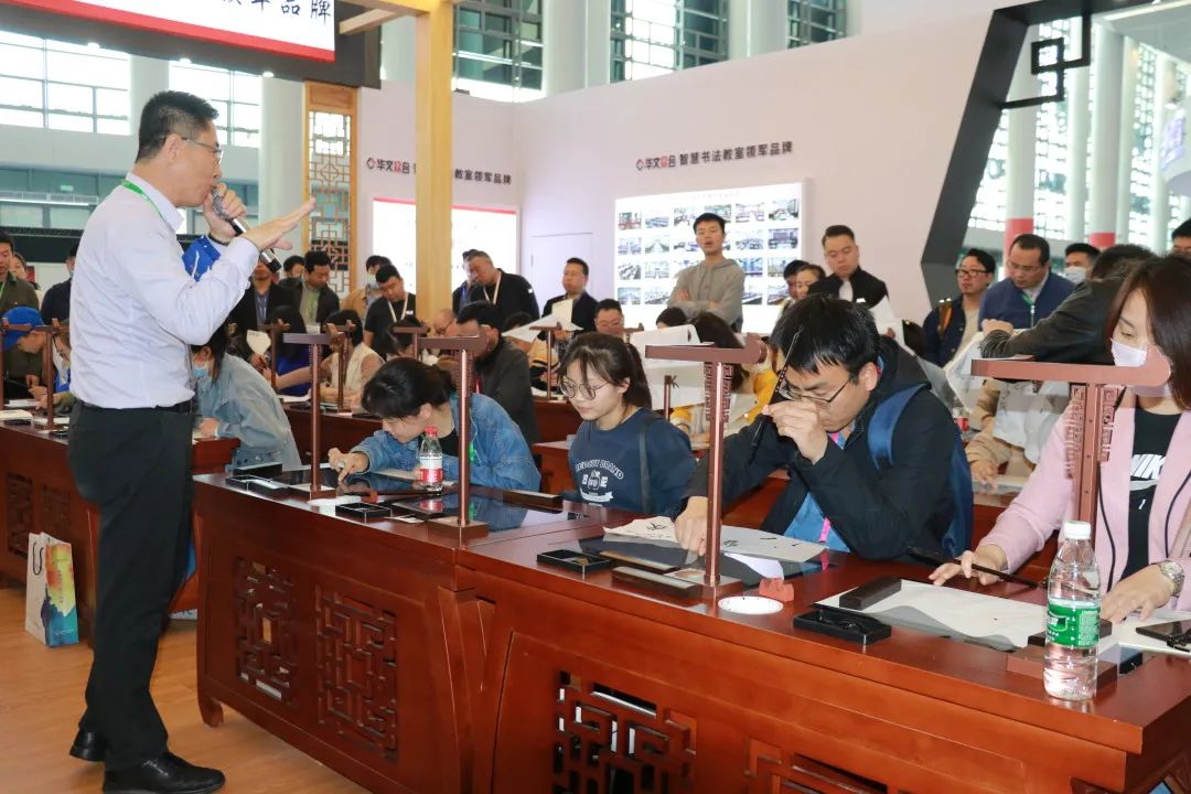 观众体验华文众合第8代智慧书法教室参与互动赢得精美礼品