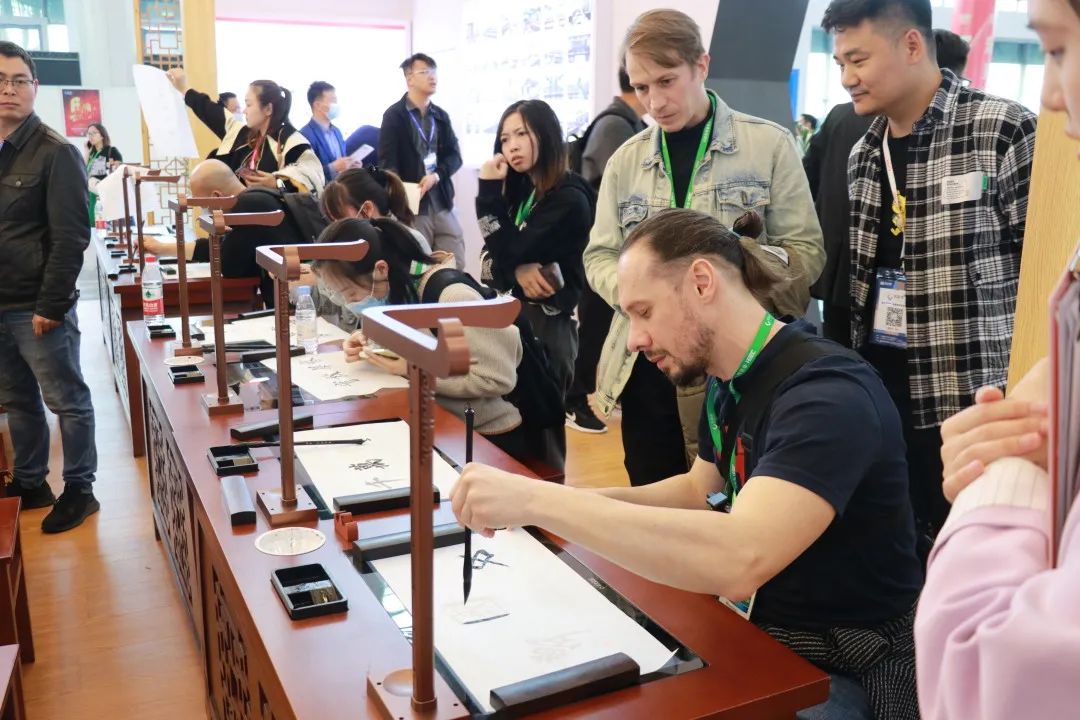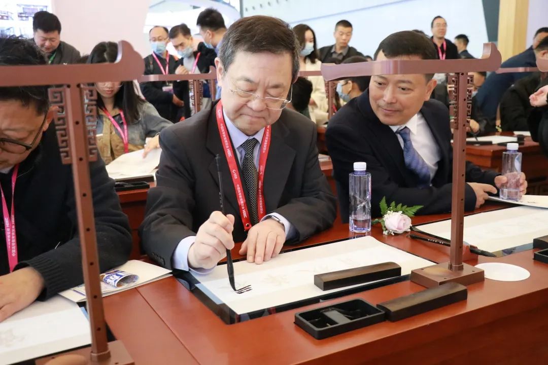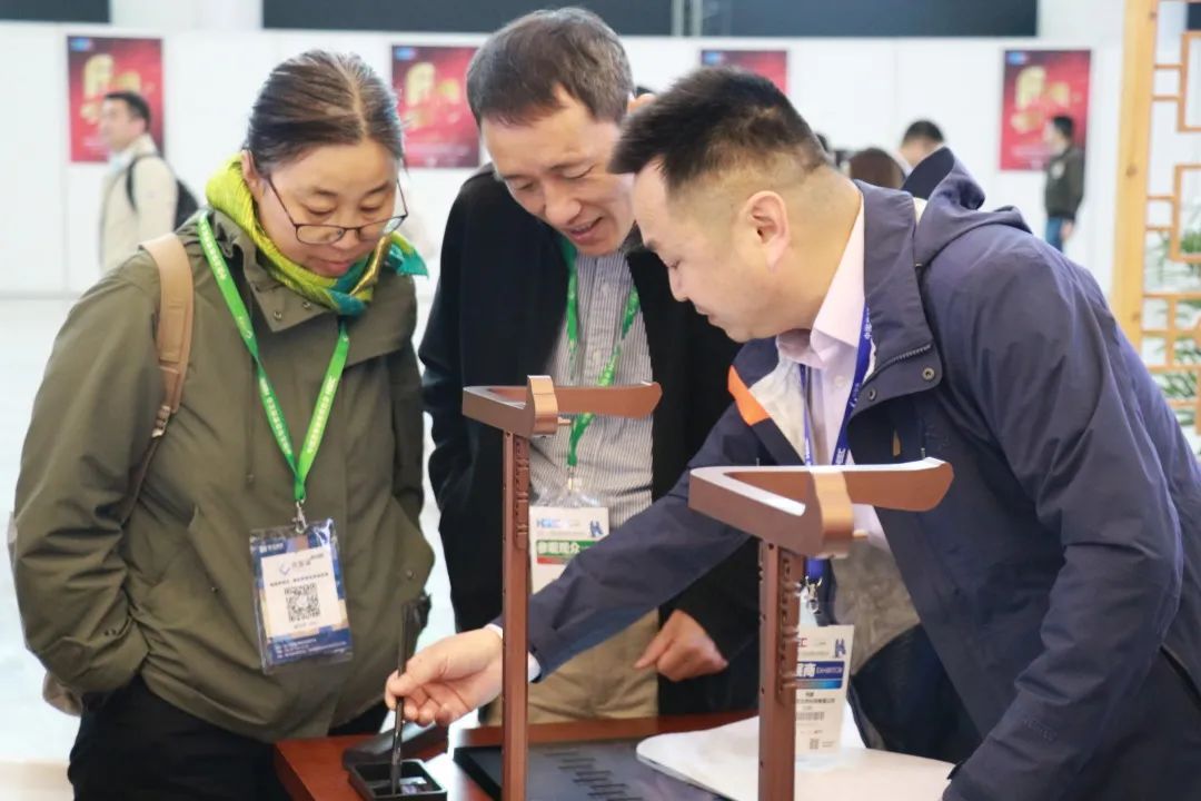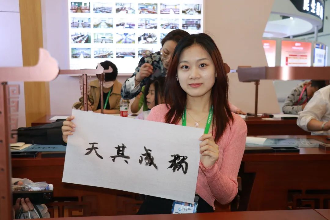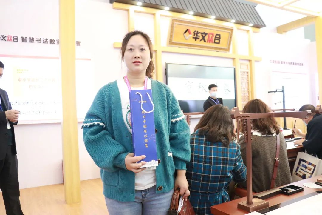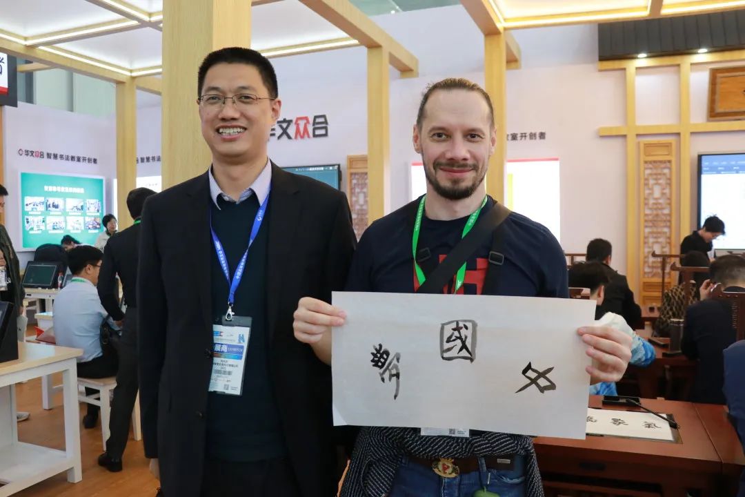 观众体验华文众合第8代智慧书法教室参与互动赢得精美礼品