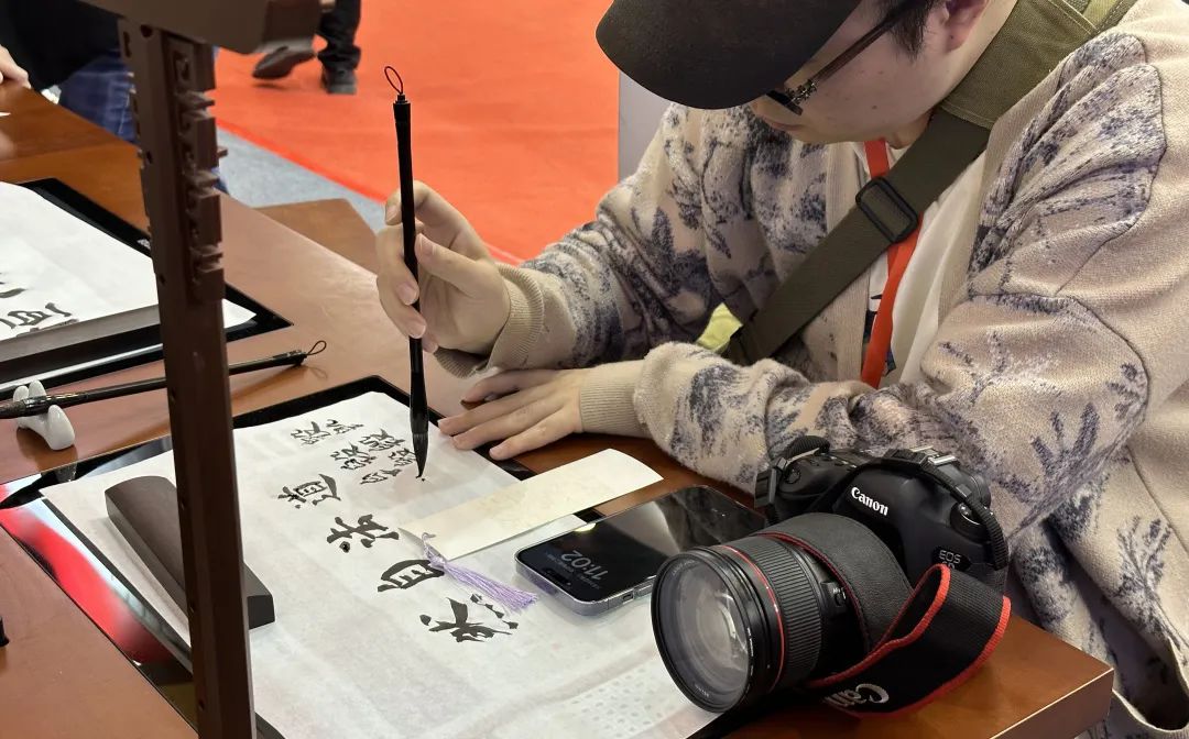 现场观众感受书法艺术魅力