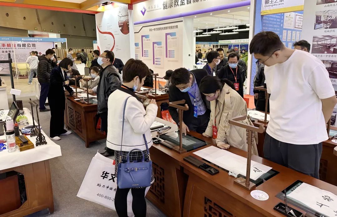 2023年3月29日至31日,第四届山西教育装备展览会在山西太原的晋阳湖国际会展中心举行。经济转暖,展会活动也呈现加快发展的态势,各类新式教育装备相关新品在展会上悉数亮相。作为智慧书法教育领域的实力品牌,华文众合也在本次展会上展出最新产品第8代智慧书法教室及智慧粉笔教室。