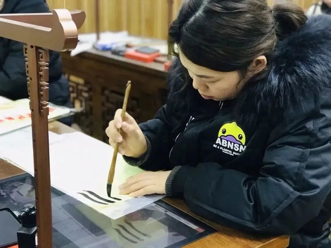 培训后,教师们纷纷拿起毛笔练习,并使用书法资源库进行自学。军马场学校将古色古香的传统笔墨和现代科技数字化书写相结合,赋能青年教师的综合素养提升。