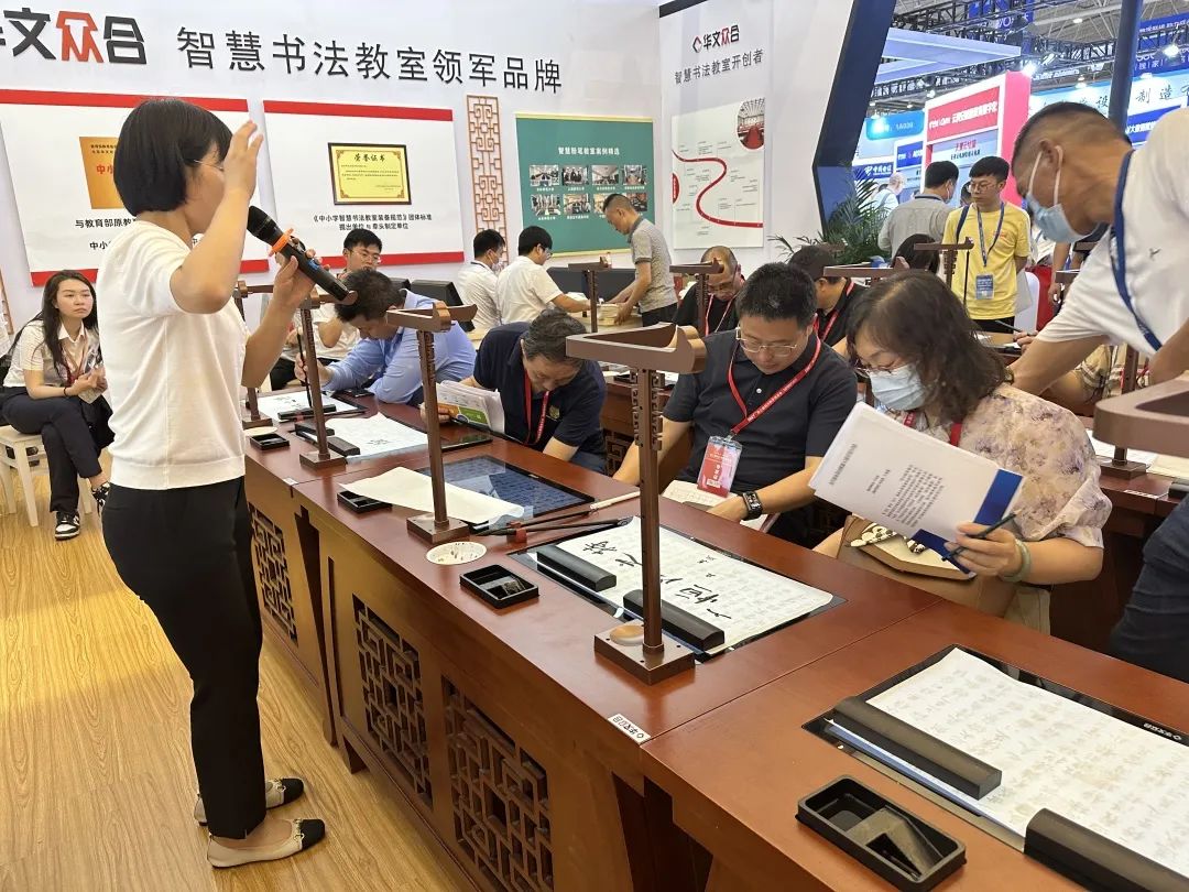5月19日,第三届四川教育博览会在成都世纪城新国际会展中心隆重开幕。本届博览会以党的二十大精神为指引,以“装备引领·创新赋能”为主题,围绕国家发展战略、教育改革需求、行业市场趋势,聚焦“教育数字化”“虚拟现实+教育”等热点趋势,展示基于人工智能、大数据等新技术的教育装备新产品,为教育界人士带来了一场视觉盛宴。华文众合携第8代智慧书法教室、智慧粉笔教室亮相蓉城,以科技创新赋能书法教育,展现书法教学中的新模式、新理念。