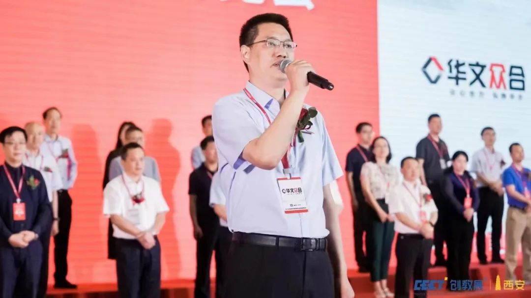 由华文众合独家冠名的第四届西北教育装备博览会,于6月9日在西安国际会展中心盛大开幕。中国教育装备行业协会常务副会长夏国明,陕西省委教育工委委员、陕西省教育厅副厅长赵昶葆,教育部教育技术与资源发展中心(中央电化教育馆)标准处处长刘强,中国教育装备行业协会教育装备研究院常务副院长施建国,中国教育装备行业协会会展部主任张继芳,以及甘肃省教育装备办公室、宁夏教育装备和校园风险管理中心、新疆维吾尔自治区教育条件装备中心、青海省教育技术装备中心等领导及负责同志出席开幕式。陕西省教育厅教育技术装备管理中心主任赵梦主持开幕式。作为独家冠名单位,华文众合董事长向大凤受邀出席开幕式并发言。