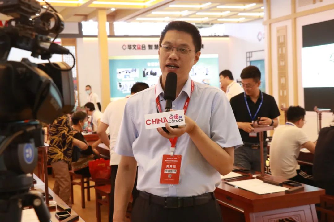 教育部教育技术与资源发展中心(中央电化教育馆)标准处处长刘强、深圳市教育装备行业协会会长彭锦环莅临华文众合展位指导