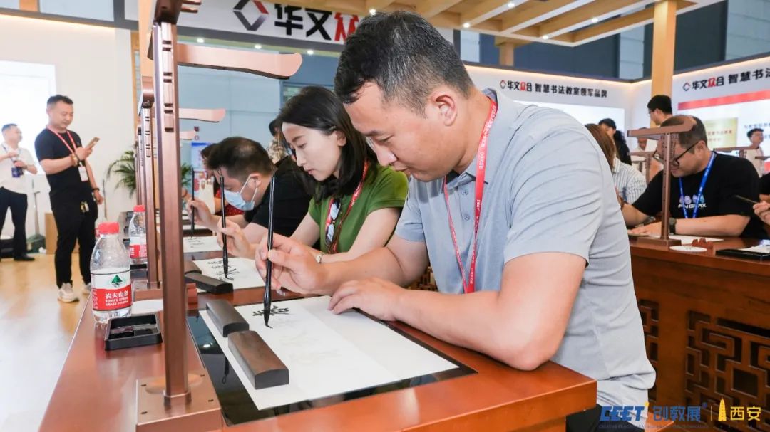 华文在本次博览会上表现亮眼,聚焦智慧书法教育,阐述传统与科技的结合,展示智慧书法前沿科技,携最新产品第8代智慧书法教室、智慧粉笔教室亮相西北五省规模最大的教育装备舞台,新产品、新技术、新亮点,获得了线上线下观众的广泛关注。