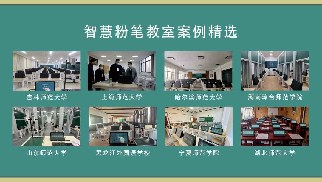 华文众合首创推出智慧粉笔教室,结合历代智慧书法教室的亮点,以国内师范院校的三笔字教学为导向,还原了“老师在讲台授课、学生在座位上学习”的常规课堂场景;通过交互式粉笔临摹台的专利技术,让学生用普通粉笔即可直接在临摹屏上书写,还原了粉笔书写的体验。