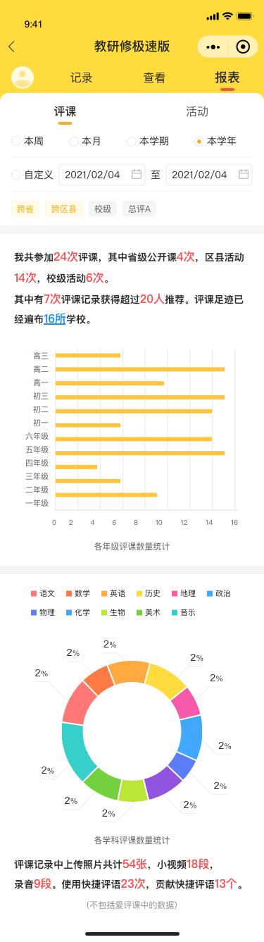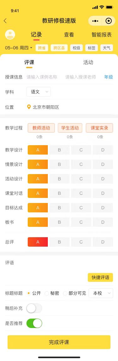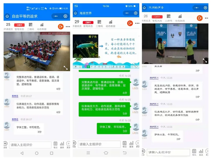 现场气氛热烈,老师们从发布课例,到开始评课,用快捷的内置评价体系多角度立体解剖,或文字评语、图片评语、拍照,邀请远程教研专家点评课例,提炼本堂课优缺点、打上特色标签;查看评价报告和对比同堂课例,老师们迅速掌握了评课系统的操作,信息技术带来的效率和数据留存,教研成果分享和固化的便捷。