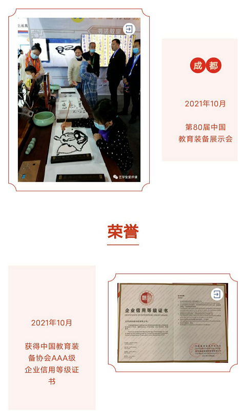 拥有自主开发的系列产品,涉及中国传统文化书画教室、老师成长和提升的教研产品、增赋减负备授课工具、提升优质资源均衡的结对课堂。自主研发产品:课堂评价-爱评课、美术教络系统-艺学宝、数字临摹书法教室-艺学宝、互动结对课堂、名师专递课堂。配套硬件产品:艺板绘画屏、艺学宝书法临摹全贴合屏,产品优势:数据采集与运用、互联网+等创新运用在教学和教研,助力英音美薄弱学科的师资水平提升和名师课堂发挥普惠作用。