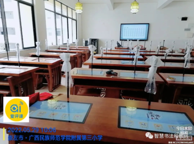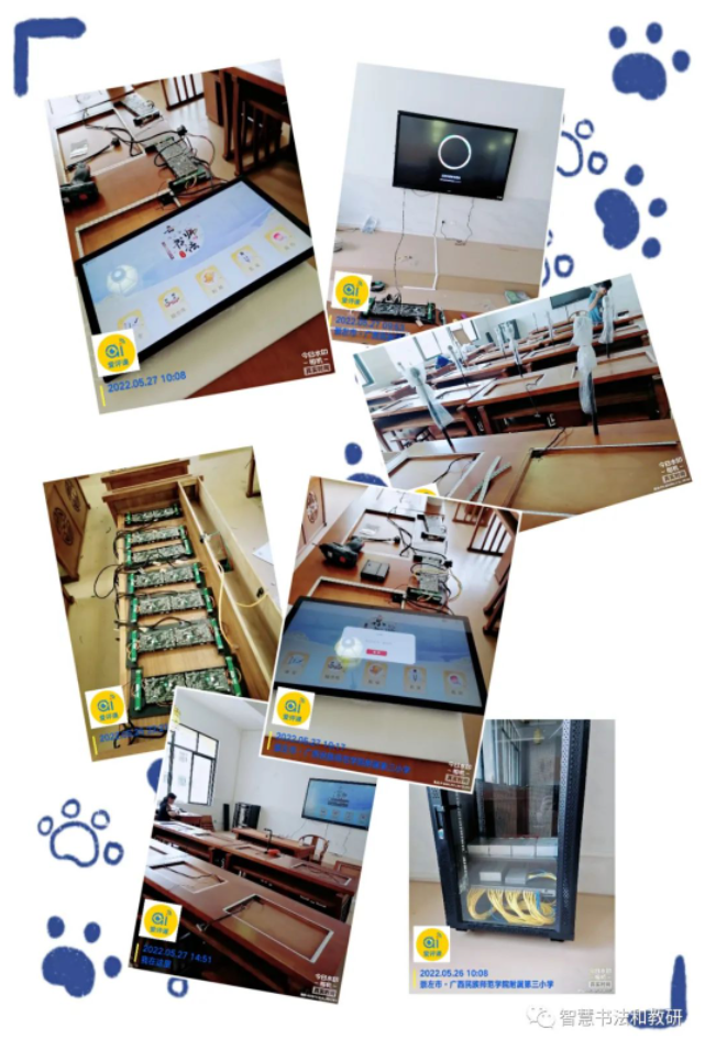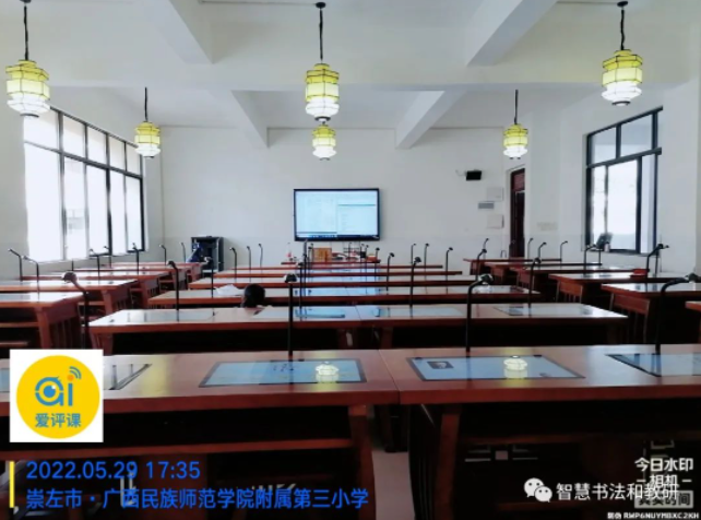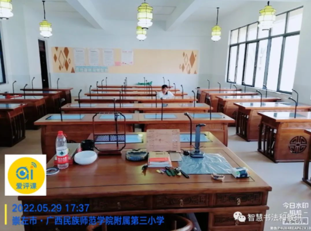 五月中旬, 工程师胡睿刚忙完长塘里小学书法教室,过了隔离期,经过连续几日核酸检测后赶往广西民族师范附属第三小学,开始了智慧书法教室的规划、布局、施工。