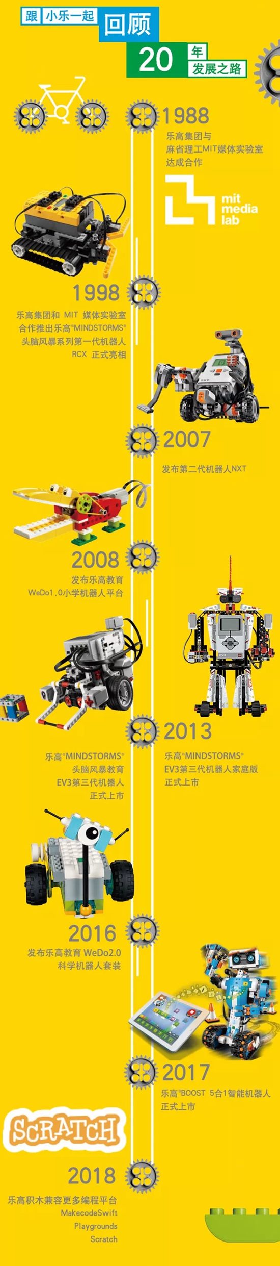 大家发现了吗?李家明老师的趣味编程课堂中,随处可见乐高编程产品的身影。你知道吗,其实今年是乐高编程产品系列与全球各地的老师和孩子们,一同走过的第20个年头。在这20年里,乐高编程产品是怎样一步步“变身”的?现在就跟着小乐,一起来看看吧~