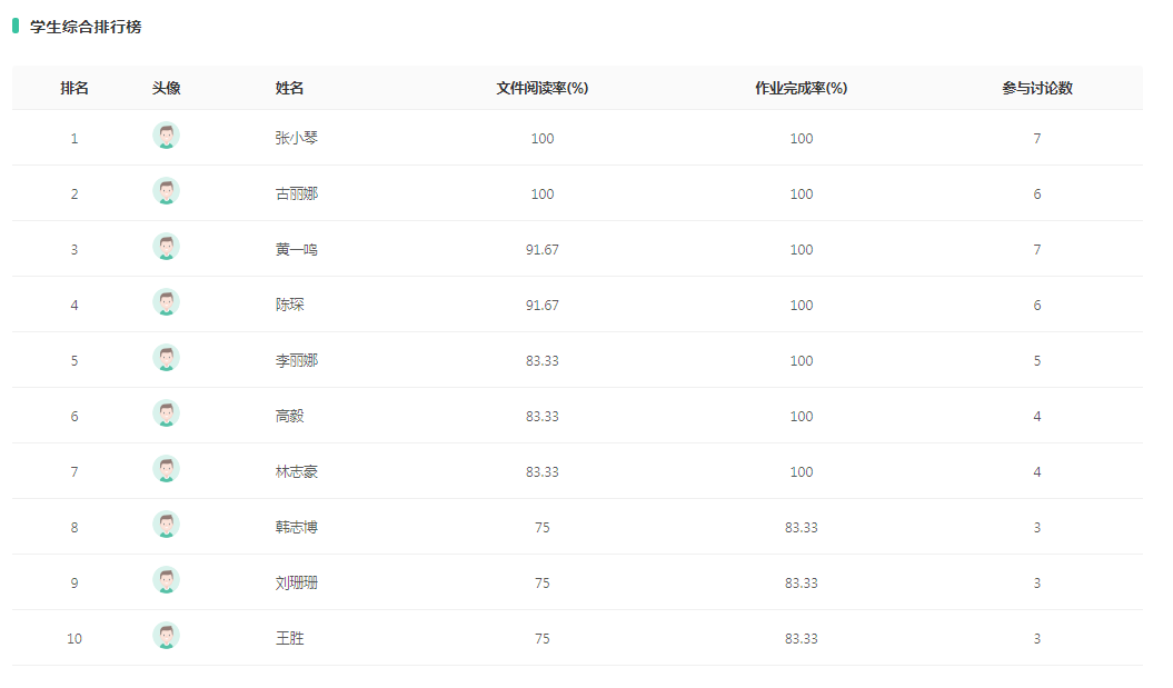 无论是线上教学还是线下教学,教师都可以应用青鹿金课教学云平台采集并留存学生行为数据。这些数据包括课堂互动参与率、课后作业完成率等。教师可以根据这些数据反馈及时地调整教学计划,让教学内容更有针对性。此外教学数据也为过程性考核评价提供依据,有助于改变以期末考为主体的单维度评价体系。