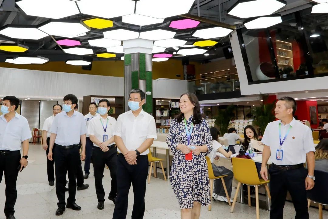 何报翔副省长实地参观了湖南工商大学岭南校区创新创业创意园不多堂艺术馆、创意文化馆、创意中心、智创空间、创客工场、创想长廊,元宇宙实验室,经管综合楼楚枫书院、体育活动中心、求是书院,科技楼国家基础科学中心、数据智能与智慧社会国家重点实验室(培育)基地以及省级重点实验室和工程研究中心等办学场所,详细询问了解了湖南工商大学在人才培养、学科专业建设、科学研究及成果转化、创新创业及项目转化、校园文化建设等方面的办学情况。