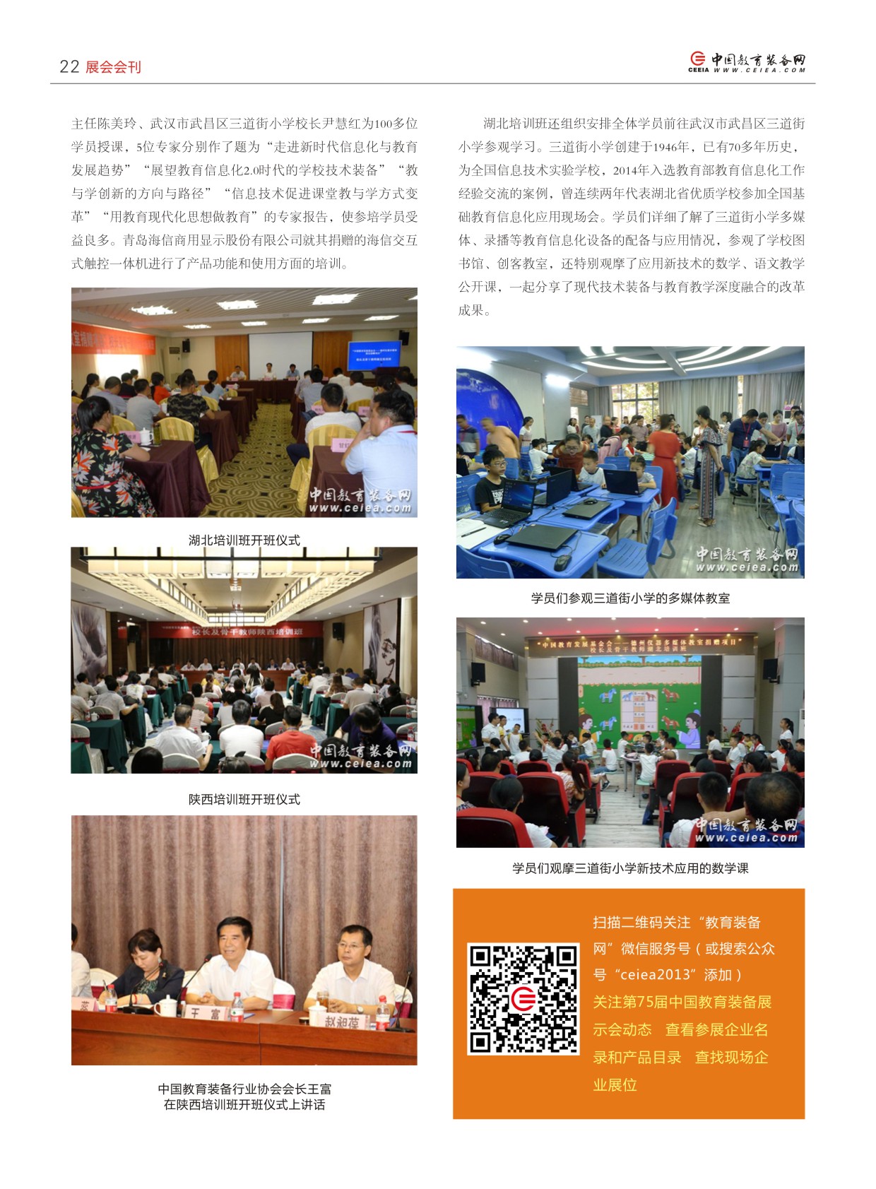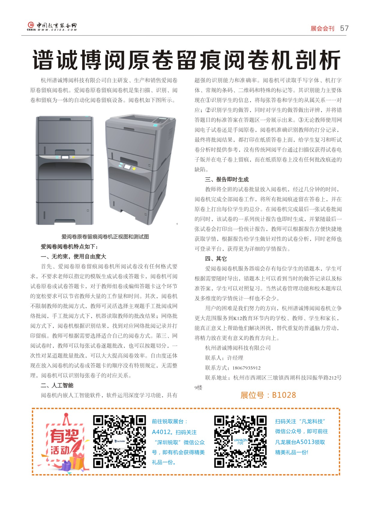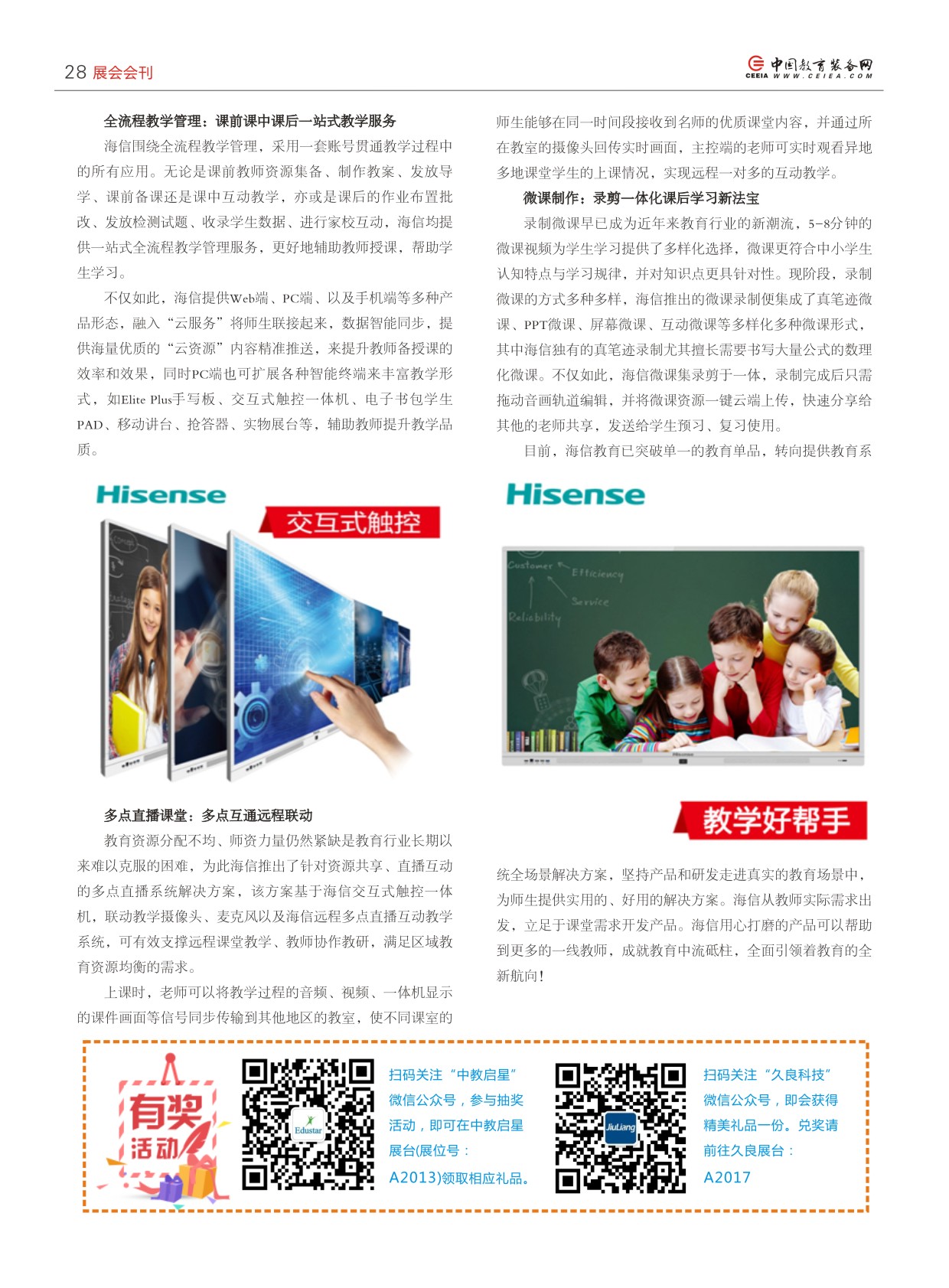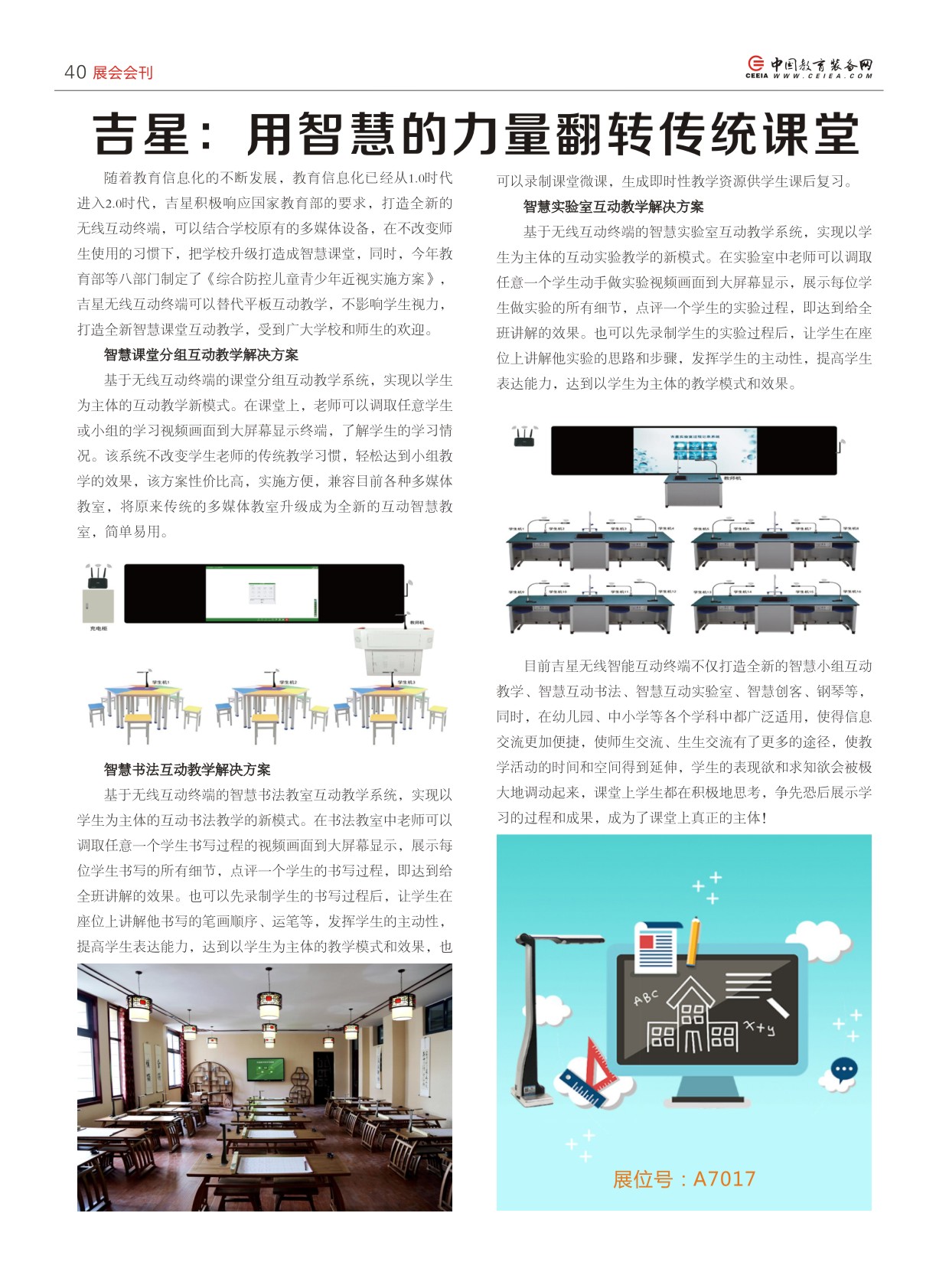 为更好的服务展会、服务企业、服务参展观众,教育装备网围绕“提供展会活动指引,突出参展企业亮点”为宗旨,精心策划制作了《中国教育装备展示会展会特刊》(以下简称《特刊》),于展会期间,现场发放给行业协会领导、各省参会领导、代表以及现场观众。