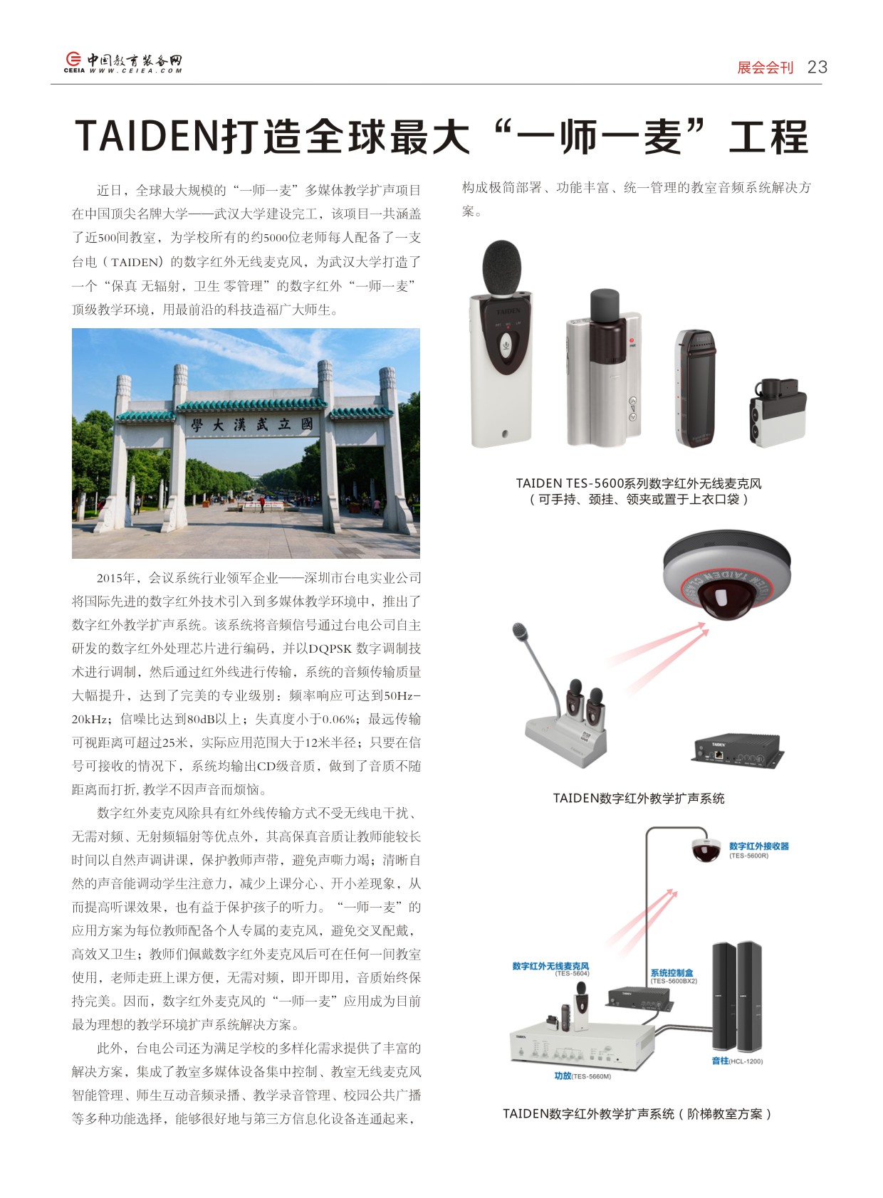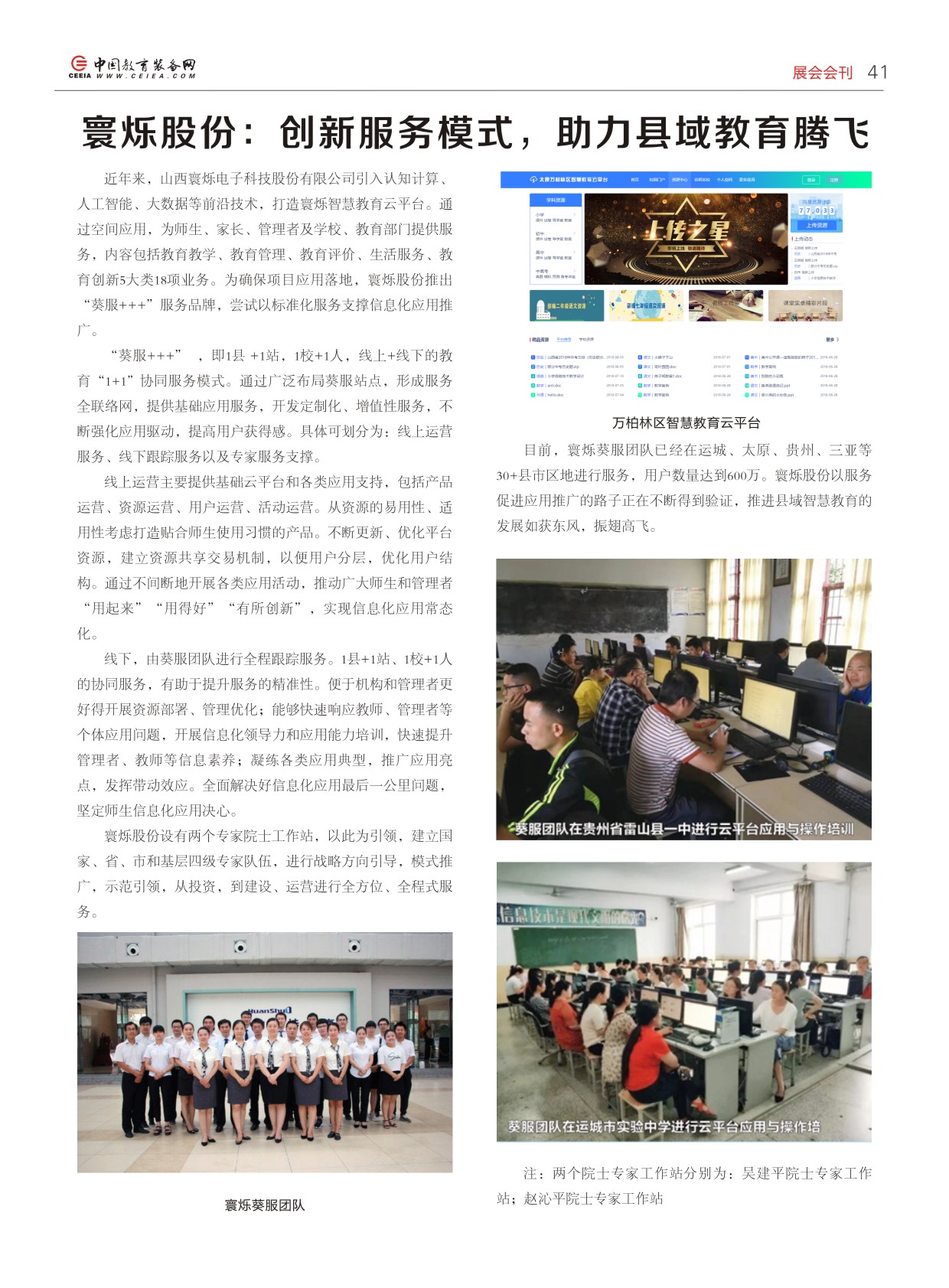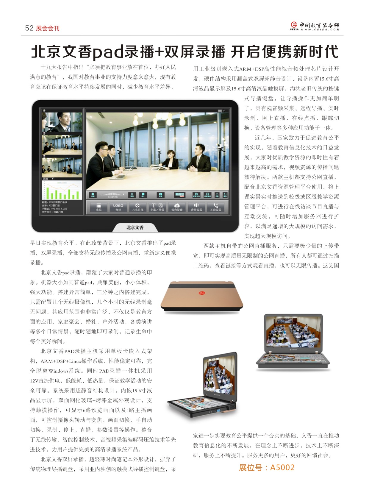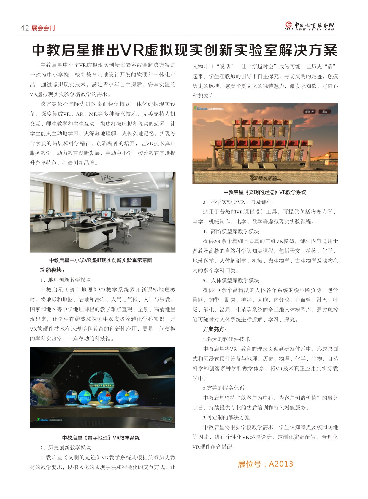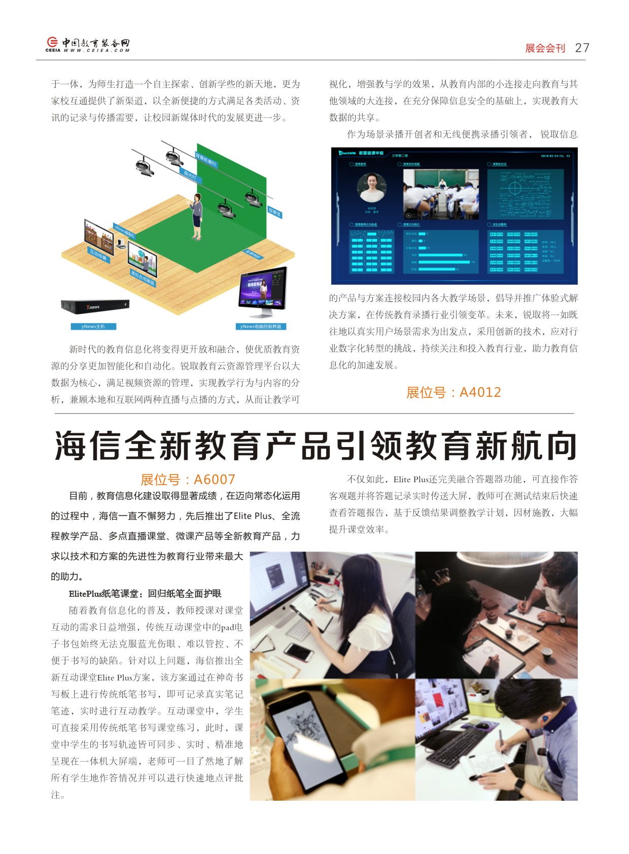 为更好的服务展会、服务企业、服务参展观众,教育装备网围绕“提供展会活动指引,突出参展企业亮点”为宗旨,精心策划制作了《中国教育装备展示会展会特刊》(以下简称《特刊》),于展会期间,现场发放给行业协会领导、各省参会领导、代表以及现场观众。