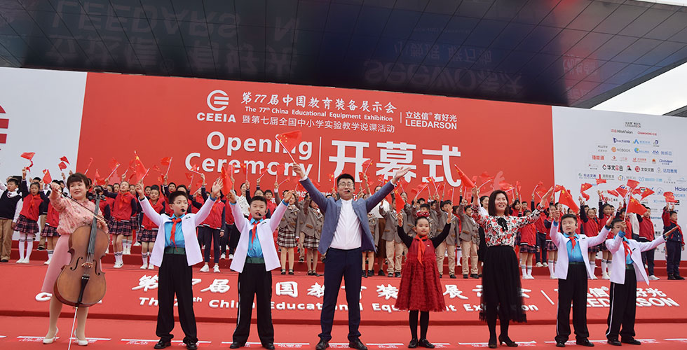 2019年10月12日上午,在《我和我的祖国》快闪活动深情饱满的表演中,第77届中国教育装备展示会在中铁·青岛市世博城国际博览中心盛大开幕。[查看更多]
